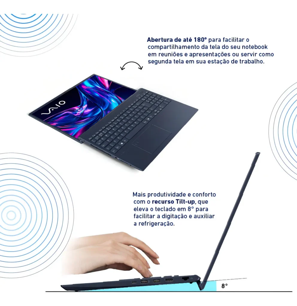 Isso reforça a percepção de que o notebook vaio fe16 é bom para quem busca conforto visual no dia a dia.